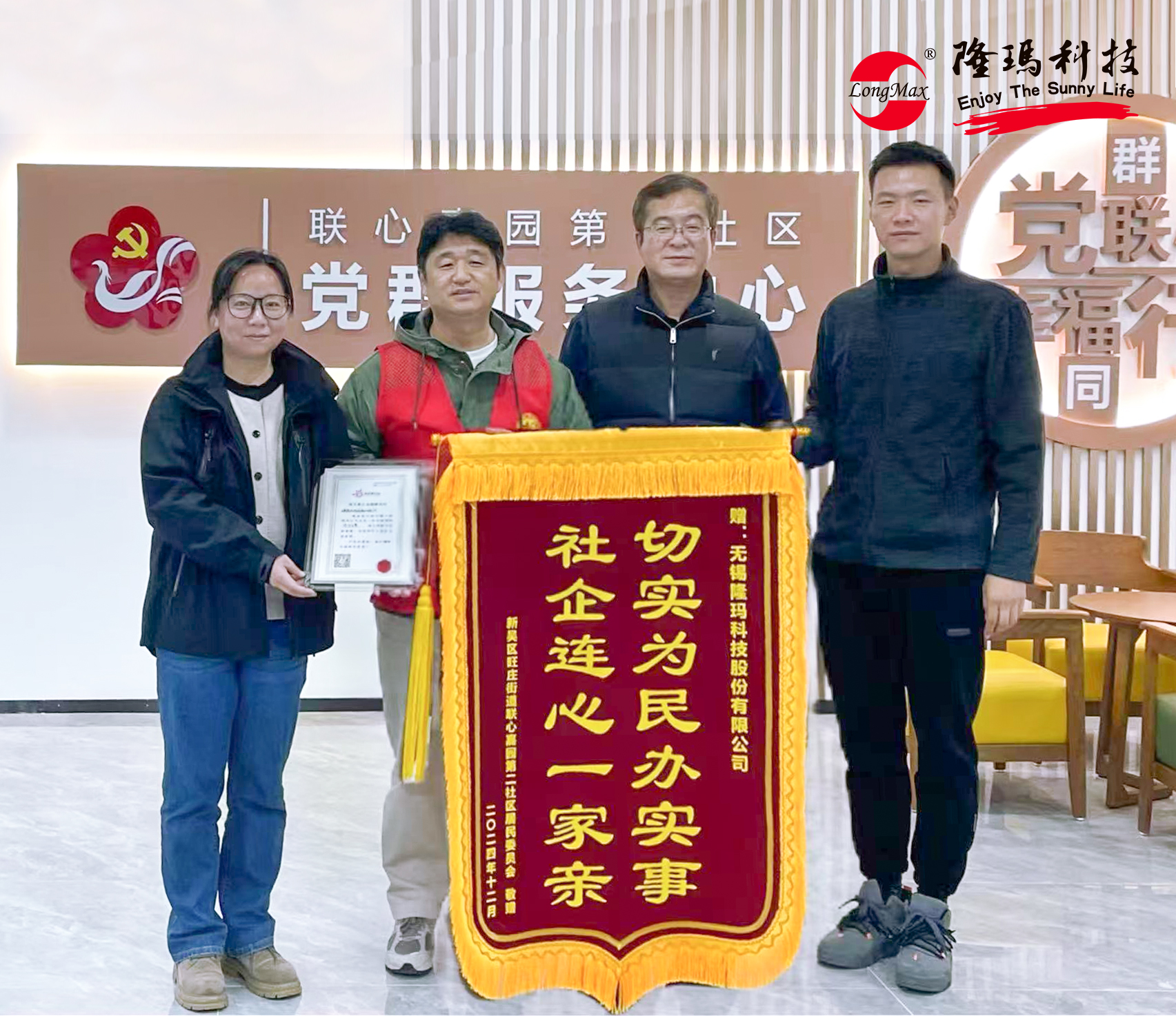 12月 6日,在聯(lián)心嘉園南區(qū)舉行的社會(huì)企業(yè)捐贈(zèng)活動(dòng)儀式上,無(wú)錫隆瑪科技捐贈(zèng)的3萬(wàn)元資金有力地支持了聯(lián)心嘉園社區(qū)樓道微治理工作。此次項(xiàng)目共建不僅是物質(zhì)上的支持,更是社企雙方深化合作的新起點(diǎn)。