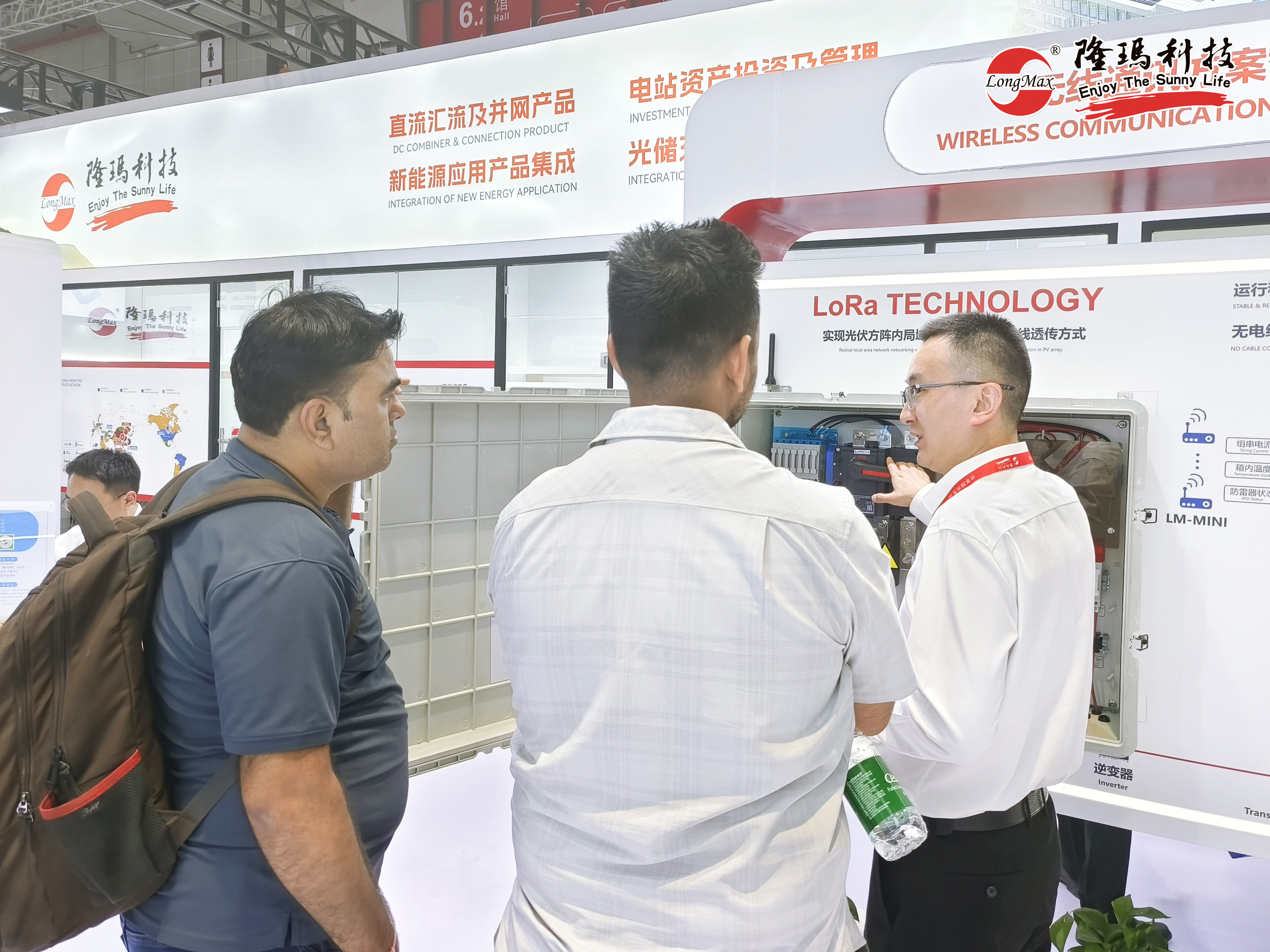 智能化是光伏產(chǎn)業(yè)未來發(fā)展的大方向,也是本次展會(huì)的“重頭戲”之一,各大品牌廠商也紛紛圍繞智能化做足“產(chǎn)品文章”,但群星閃耀也遮不住隆瑪產(chǎn)品的獨(dú)特光芒。針對(duì)規(guī)模大、分布廣的地面電站場(chǎng)景,隆瑪科技在展會(huì)上帶來了搭載成熟物聯(lián)網(wǎng)技術(shù)——LoRa無線通訊技術(shù)的智能匯流箱方案,引來現(xiàn)場(chǎng)眾多海外客商的炙熱目光。